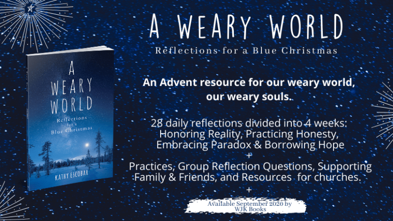 A Weary World: Reflections for a Blue Christmas by Kathy Escobar, releasing September 2020 by Westminster John Knox Press. Email for information on group discounts. Free Digital Resources for groups and congregations available here.